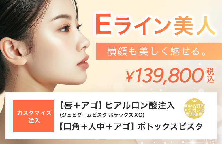 ヒアルロン酸注入【唇+アゴ】+ボトックス注射【口角+人中+アゴ】Eライン美人